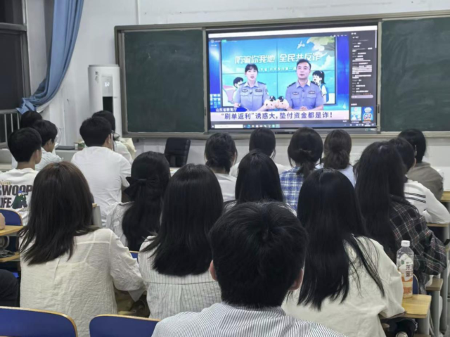 为进一步提升学生群体的反诈意识与识骗能力,切实守护学生财产安全与个人信息安全,9月16日晚,医学院组织全体学生集中观看“开学反诈第一课”线上直播活动,以“防骗你我他 全民共反诈”为主题,筑牢校园反诈安全屏障。