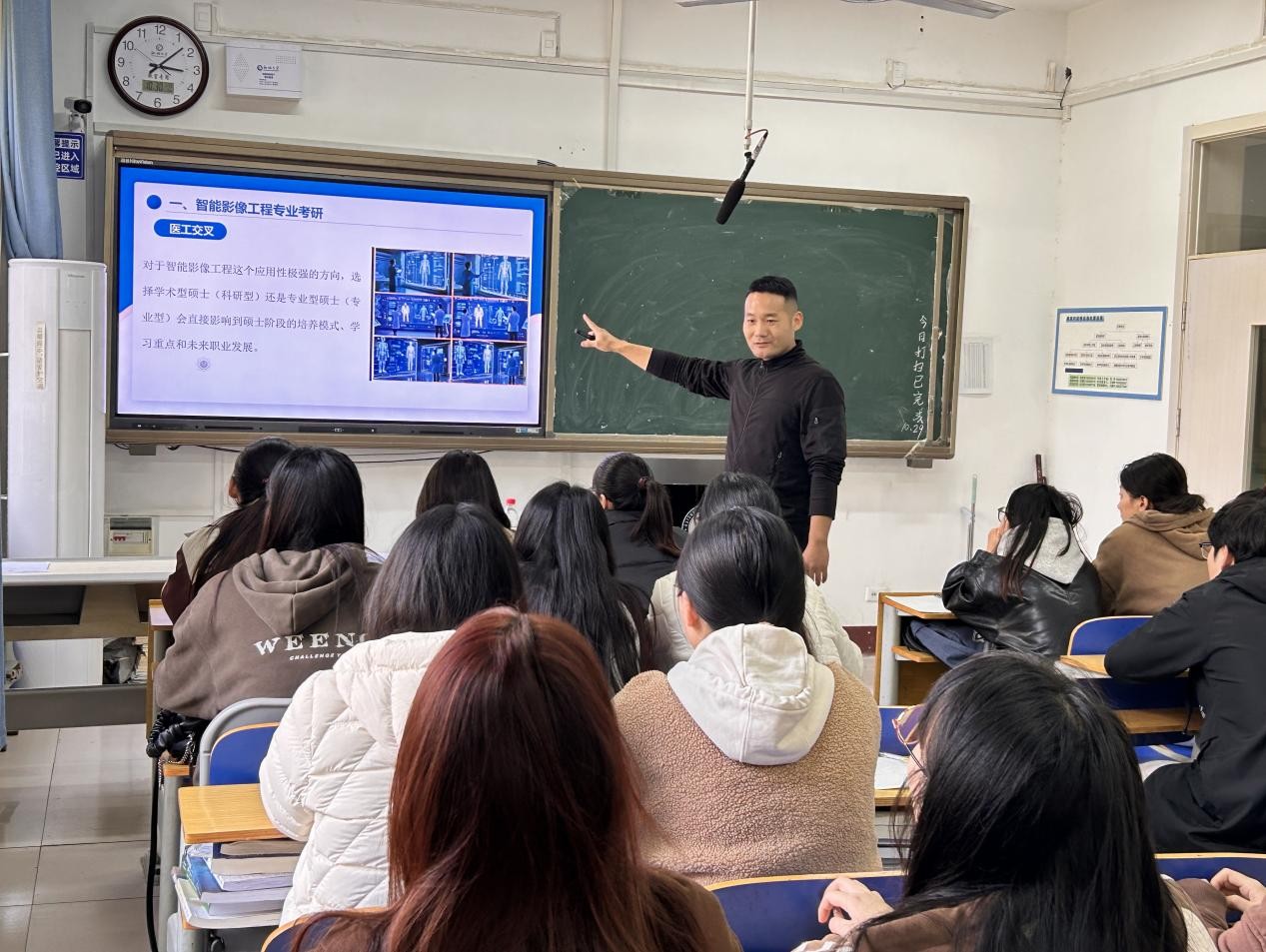 为指导智能影像工程专业学生科学备考,正确明晰考研的目标和方向,10月30日下午,医学院于学院401教室开展考研辅导会,智能影像工程教研室主任孙宗博担任主讲人,2023级智能影像工程全体学生参加。