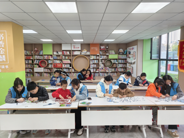 为践行大学生社会责任,助力社区儿童全面成长,11月1日下午,医学院2024级1班团支部组织志愿者走进东昌府区祥生金麟府小区,开展以趣味拼图为主题的社区志愿服务活动,用青春力量为社区注入温暖与活力。
