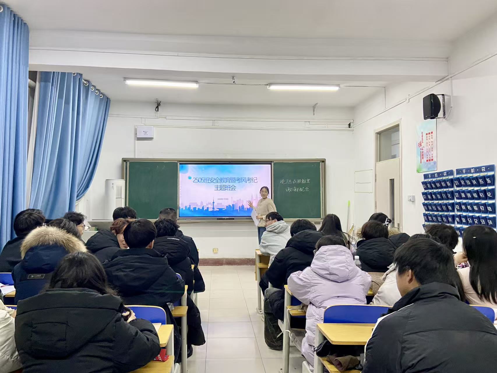 班会上,各班班主任聚焦学生安全与考风考纪两大核心主题,结合近期校园安全工作重点和期末考试安排,开展全方位、深层次的教育引导。各班班主任结合《聊城大学学生违纪处分管理规定》《聊城大学学生考试守则》等相关文件,逐条解读考试违纪作弊的认定标准与处理后果,明确告知学生考试期间的各项纪律要求。同时,通过通报典型作弊案例,让学生深刻认识到诚信应考的重要性,警示大家摒弃侥幸心理,树立“诚信考试光荣,违纪作弊可耻”的观念。