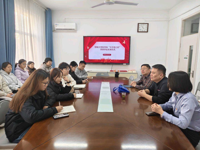 为帮助学生明晰行业前景、规划职业路径,11月27日下午,医学院于东校区一号办公楼3楼会议室举办“中贝佳口腔”奖助学金发放仪式,中贝佳口腔医院总经理李岩,医学院党委副书记、副院长王炜明,辅导员白东芳及2024级部分学生参加。