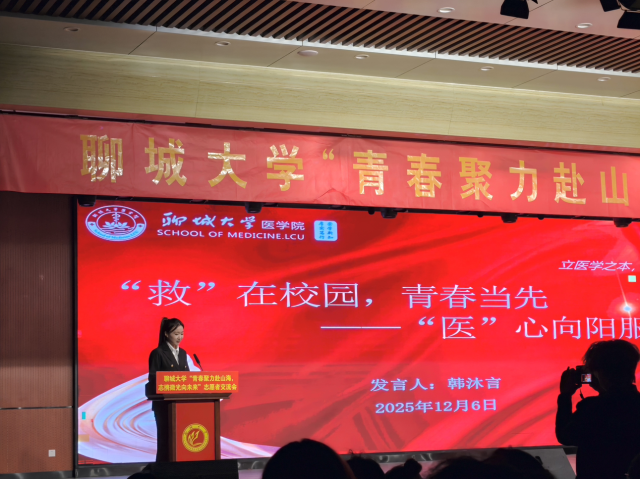 交流会中,聊城大学青年志愿者协会理事长陈国旗首先代表协会致辞,为此次会议缓缓拉开了帷幕。医心向阳志愿服务队代表韩沐言以“‘救’在校园,青春当先”为主题展开汇报。她从服务队“守护生命安全、普及急救技能”的初心与组织架构、核心理念、服务宗旨、服务定位谈起,着重分享了服务队开展的特色事迹:包括面向全校新生的急救技能培训、深入社区的健康科普、多项大型校园活动的医疗保障,以及与聊城市红十字会合作开展、覆盖广大教职工的红十字救护员培训项目。谈及服务队取得的扎实成效,韩沐言列举了服务队在师生与社区居民中累计服务超万人次、急救知识知晓率显著提升等社会效益,以及在国家级、省级急救技能大赛中屡获优异成绩,并为学校入选“全国学校急救教育试点学校”贡献一份力量。面向未来,韩沐言则表示医心向阳志愿服务队将继续完善可持续服务模式,拓宽服务范围,丰富服务内容,推动急救知识融入更广领域。