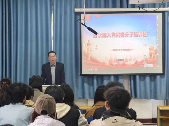 为深入学习贯彻习近平新时代中国特色社会主义思想,进一步加强入党积极分子的思想教育,切实提高政治理论素养和党性觉悟,10月9日至16日,医学院于一号办公楼组织开展入党积极分子培训,医学院党委书记明辉,党委副书记王炜明,党委组织委员任世强,学生党支部书记白东芳,共青团工作负责人史秋波,辅导员李孝杰、冯昌顺分别进行授课,全体入党积极分子积极参加培训。